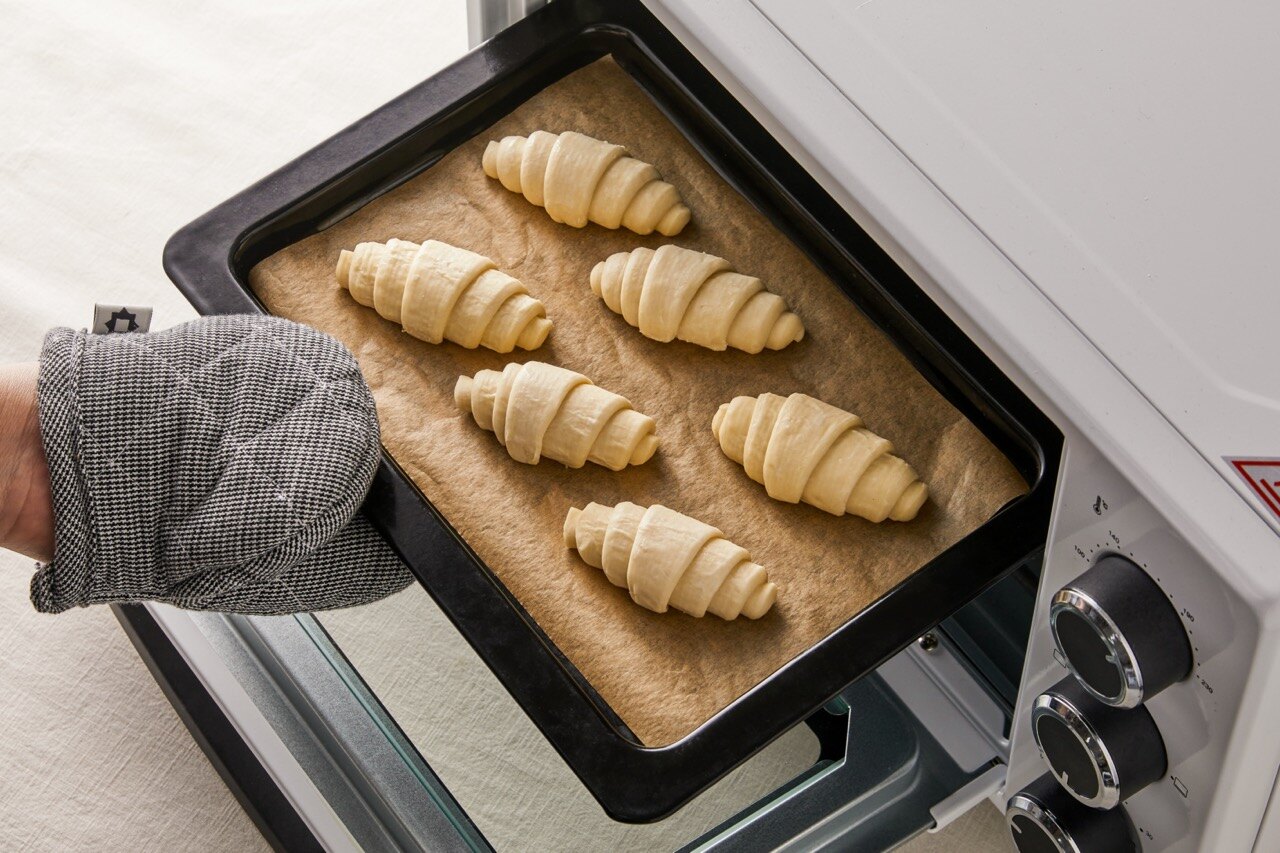 구워진 크로와상은 완전히 식힌 후 칼집을 내어주세요.