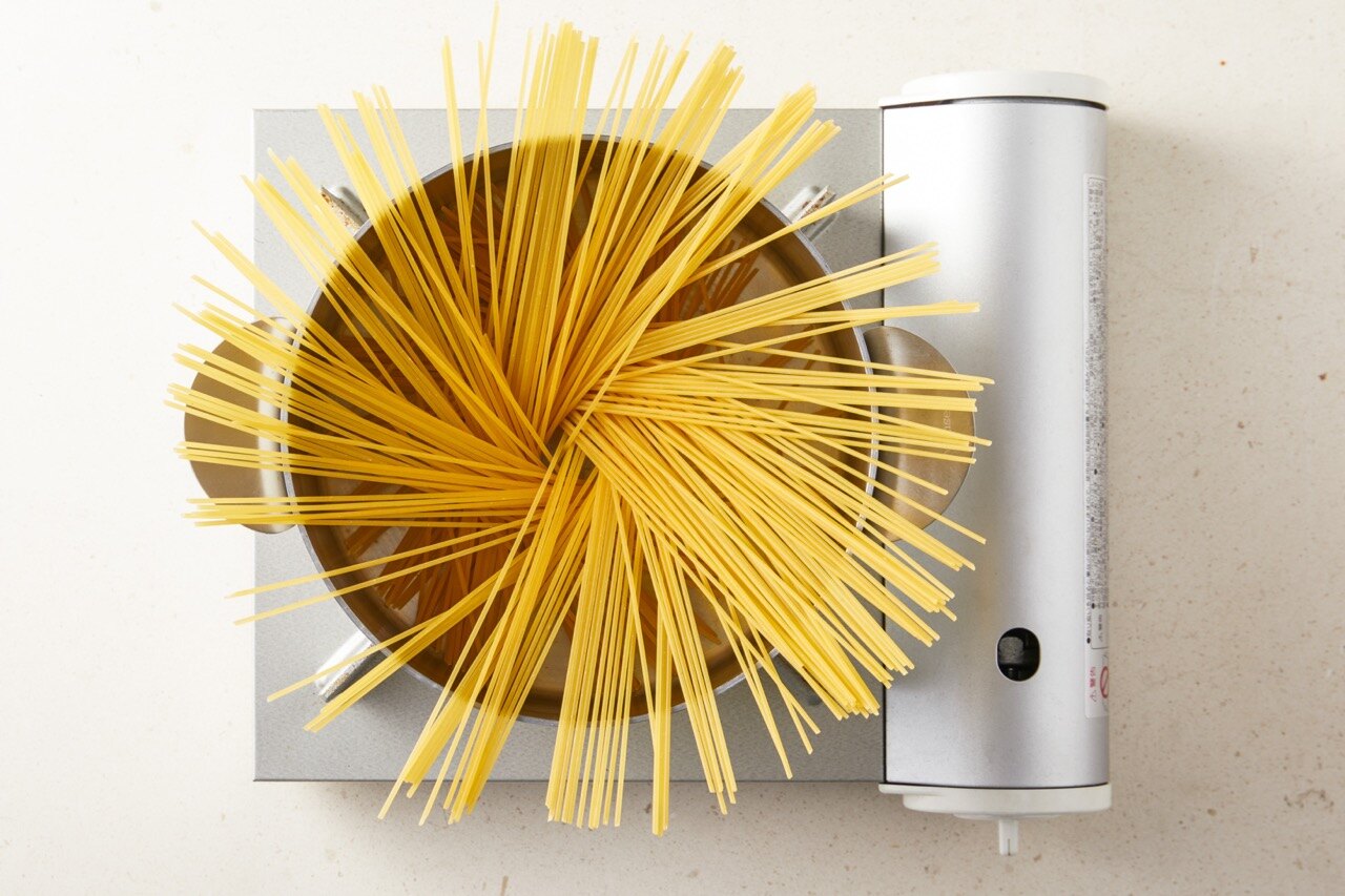 스파게티면은 소금 1스푼을 넣고 8분간 삶아 주세요.