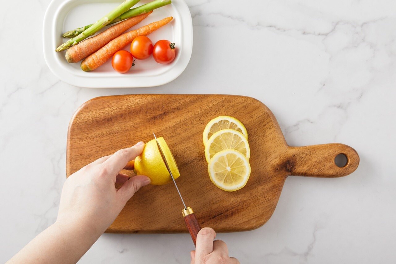 레몬은 약 1cm 두께로 슬라이스해 주세요.