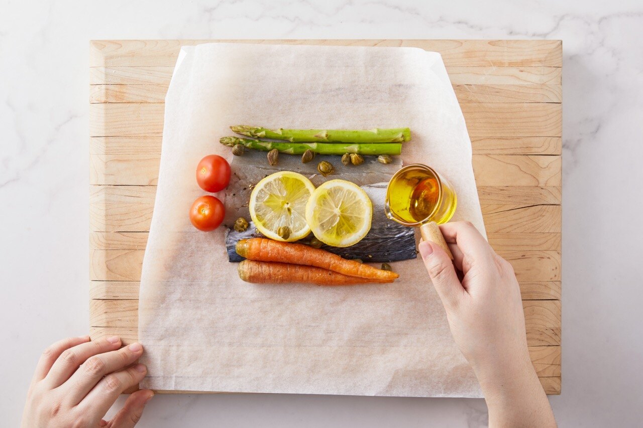 말 그대로 생선, 닭고기, 채소 등을 유산지로 감싸