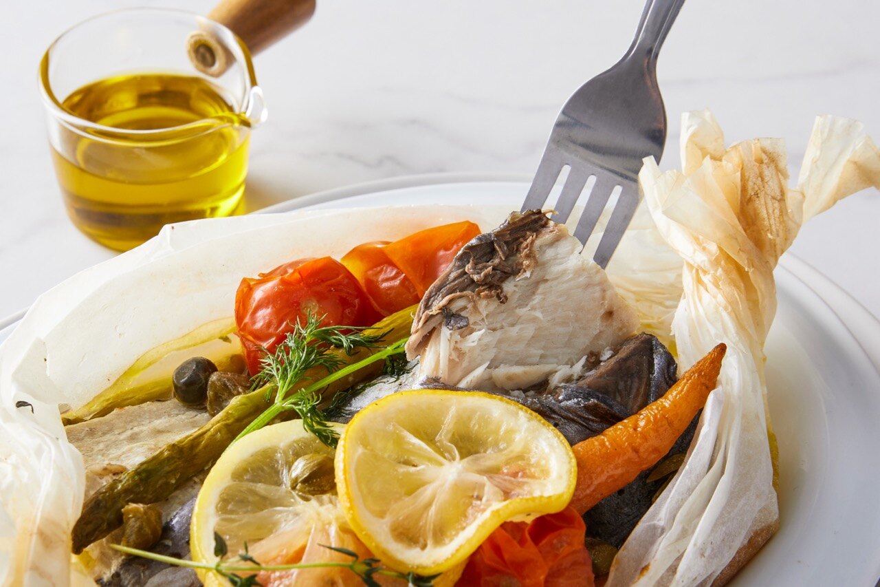 밀봉된 유산지 속 증기로 익혀 촉촉하고 부드러운 식감은 물론,