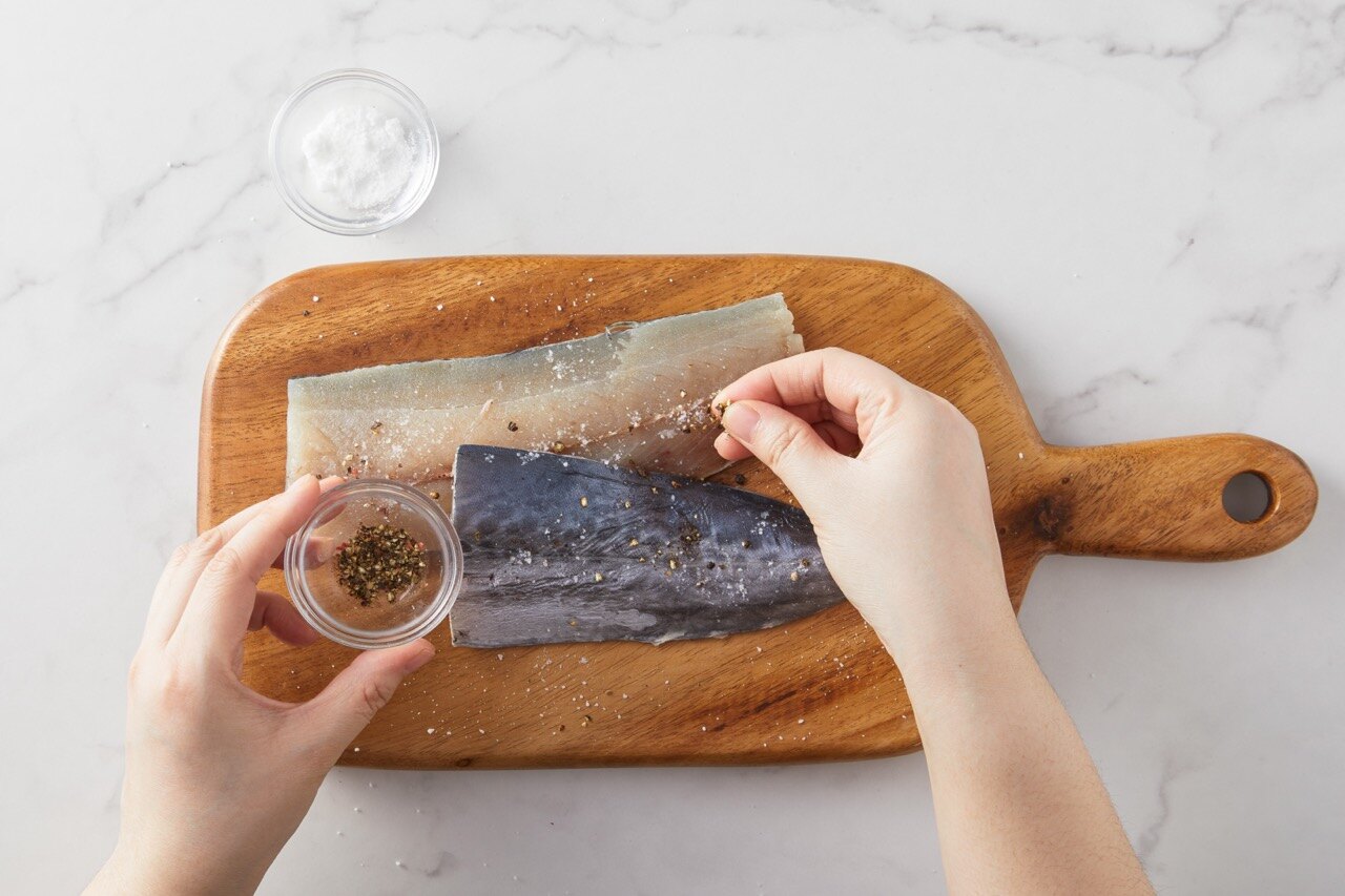 삼치는 흐르는 물에 씻은 후 키친타올로 물기를 제거하고,
