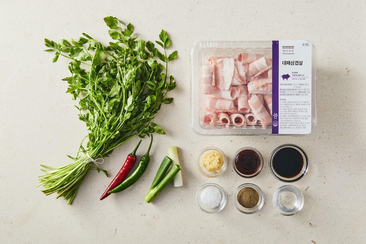 봄에 꼭 먹어야 하는 대표 봄나물, 미나리! 그리고 미나리에 빠질 수 없는 삼겹살로 근사한 요리를 만들어 보세요.