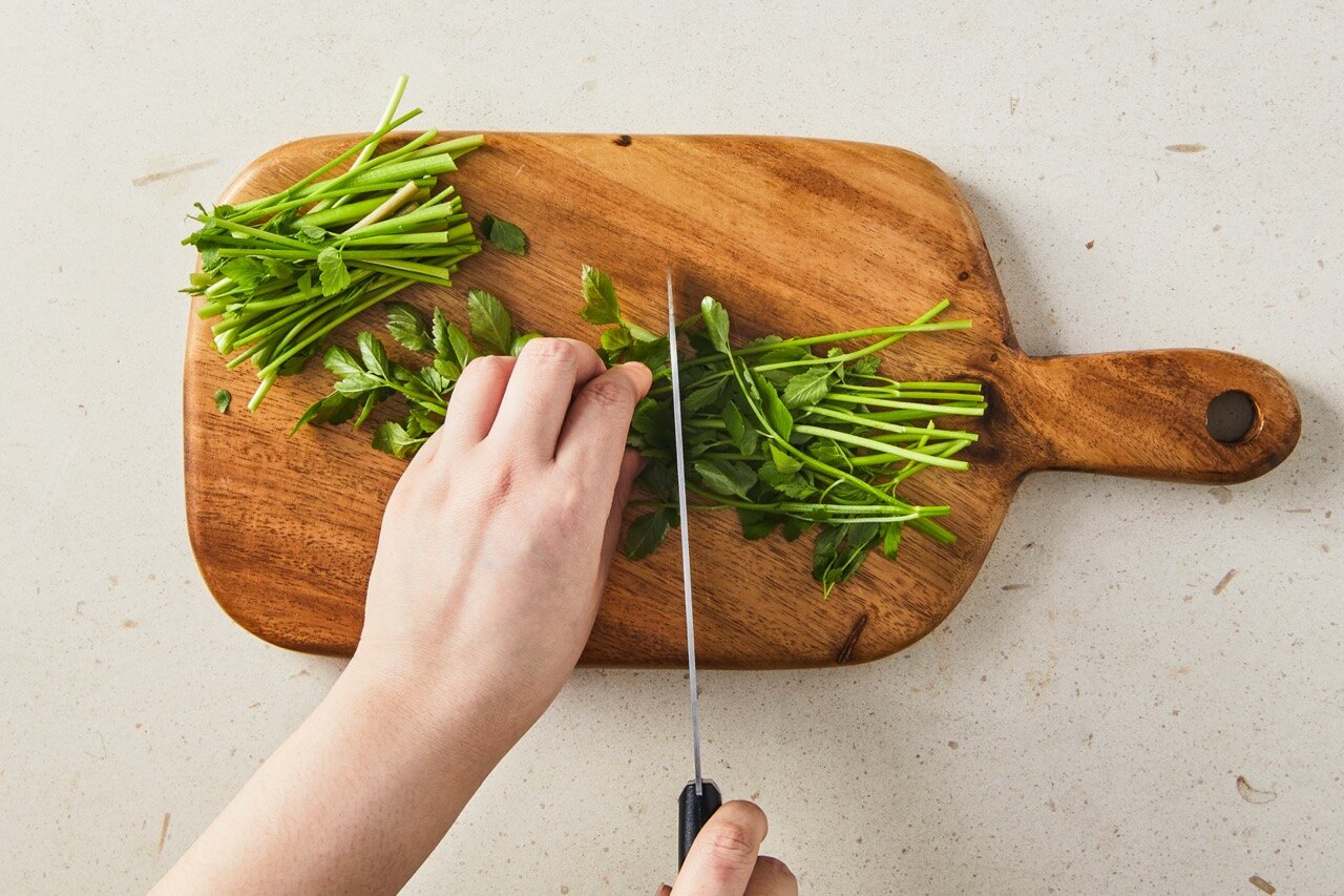 미나리는 흐르는 물에 세척한 후 물기를 제거하고,