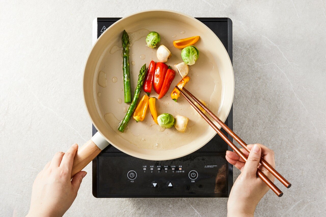 올리브유를 두른 팬에 노릇하게 구워주세요.