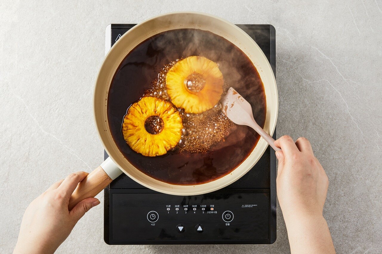 *가니쉬로 곁들일 파인애플도 함께 넣어 소스를 입혀주세요.