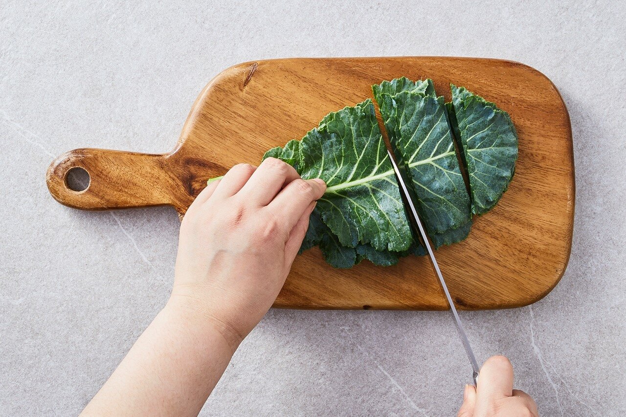 케일은 깨끗하게 세척한 후 적당한 크기로 손질해 주세요.