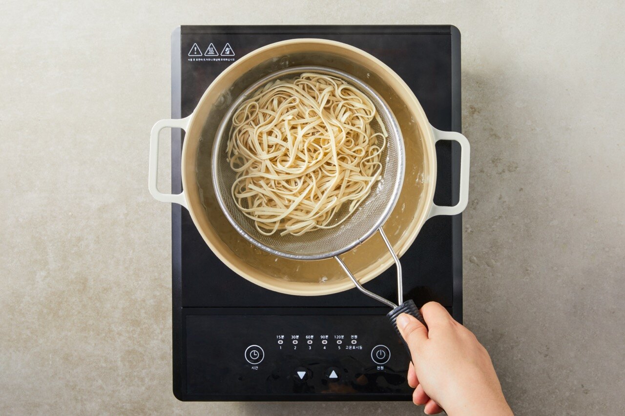 두부면은 끓는 물에 1분 내외로 살짝 데친 후 찬물에 헹궈 주세요.