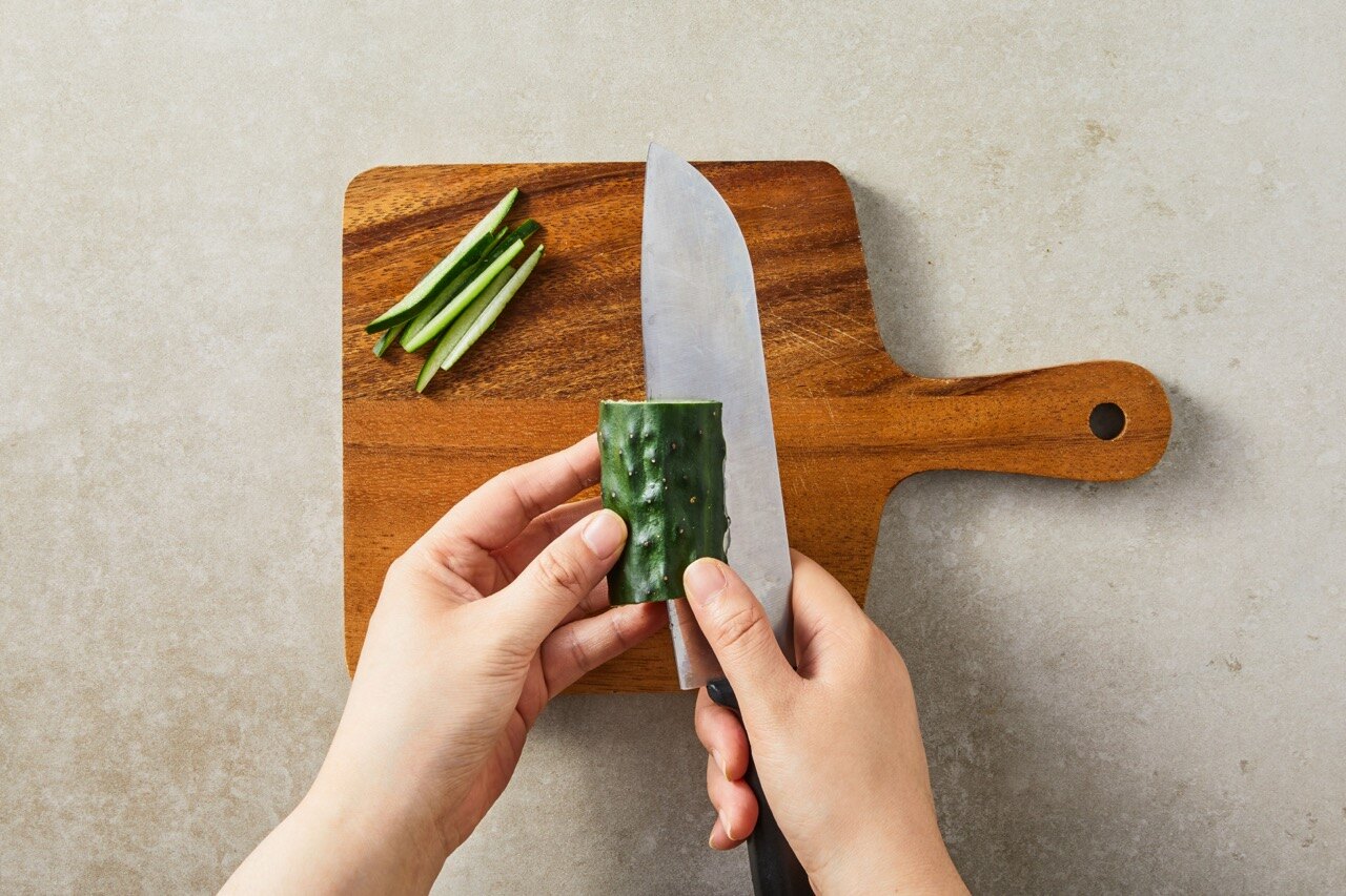 오이는 세척 후 가늘게 채썰어 준비합니다.