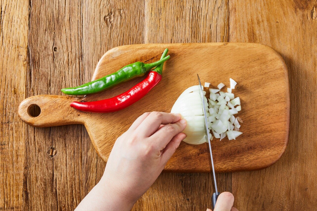 양파와 청, 홍고추는 잘게 다져서 준비합니다.