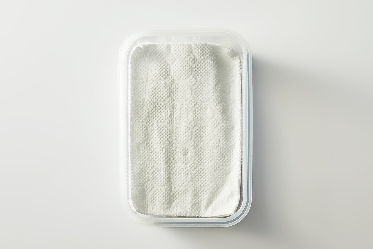키친타월을 용기에 맞춰 소금 위에 덮어 주세요.