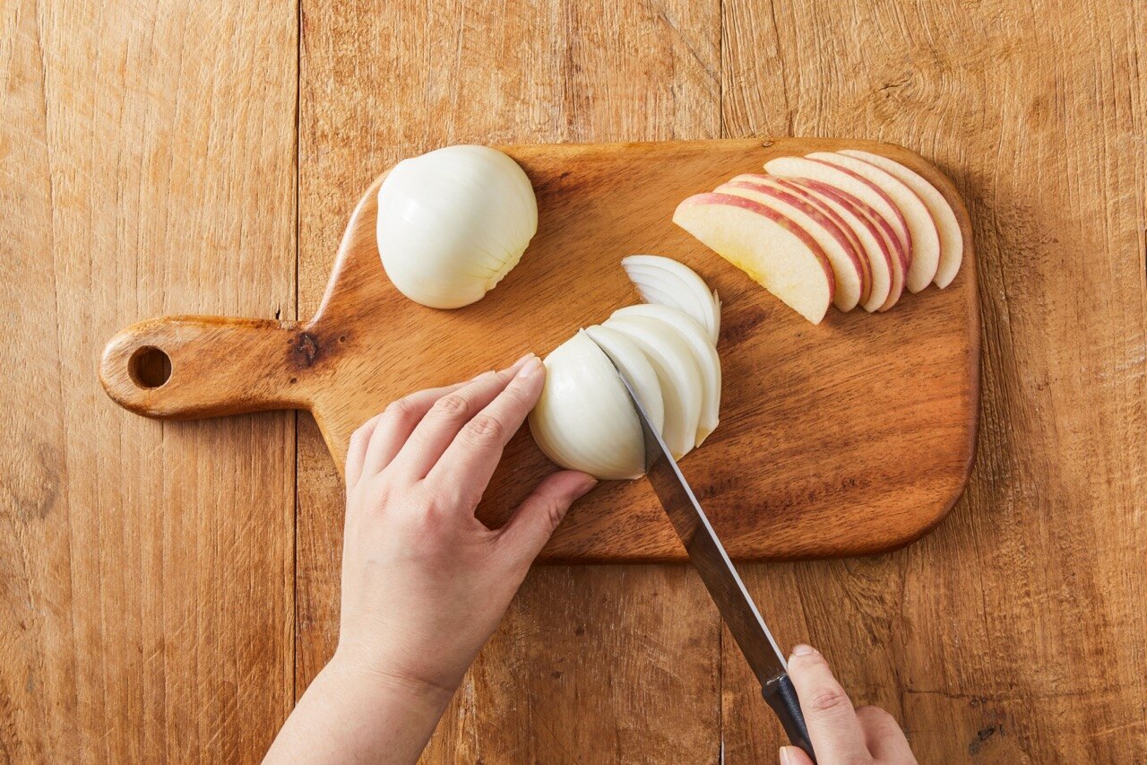 양파와 사과는 세척 후 얇게 슬라이스합니다.