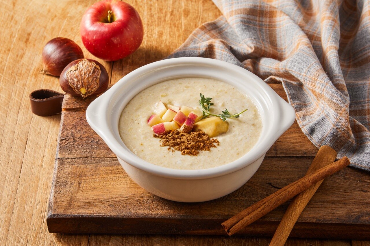 쌀쌀해진 날씨에 잘 어울리는 특별한 스프 레시피를 소개할게요. 폴리페놀이 풍부한 사과와 제철 햇밤을 함께 끓여 보세요. 밤에 함유된 비타민E는 폴리페놀과 함께 섭취할 때 항산화 작용을 극대화시킨답니다. 고소하면서 달콤한 스프 한 그릇으로 제철의 영양을 가득 채워 보세요.