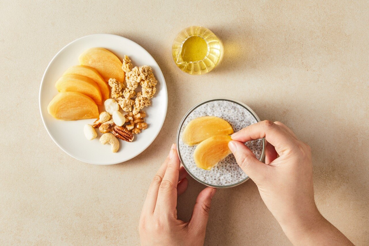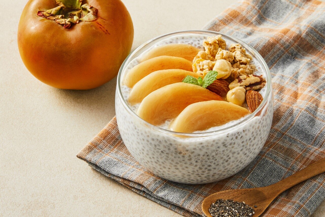 가을 제철 과일 단감과 영양 궁합이 좋은 치아씨드를 활용해 건강하고 포만감 높은 치아씨드 푸딩을 만들어 보세요. 단감의 비타민C 성분이 치아씨드에 풍부한 칼슘 흡수를 도와줘 함께 먹으면 더욱 좋아요. 톡톡 튀는 치아씨드에 아삭한 단감을 더한 건강식, 아침 메뉴로도 추천해요!