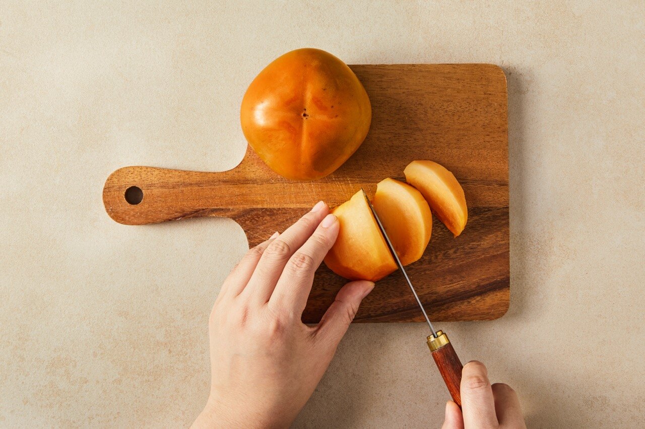 단감은 토핑으로 올리기 좋은 크기로 잘라서 준비합니다.