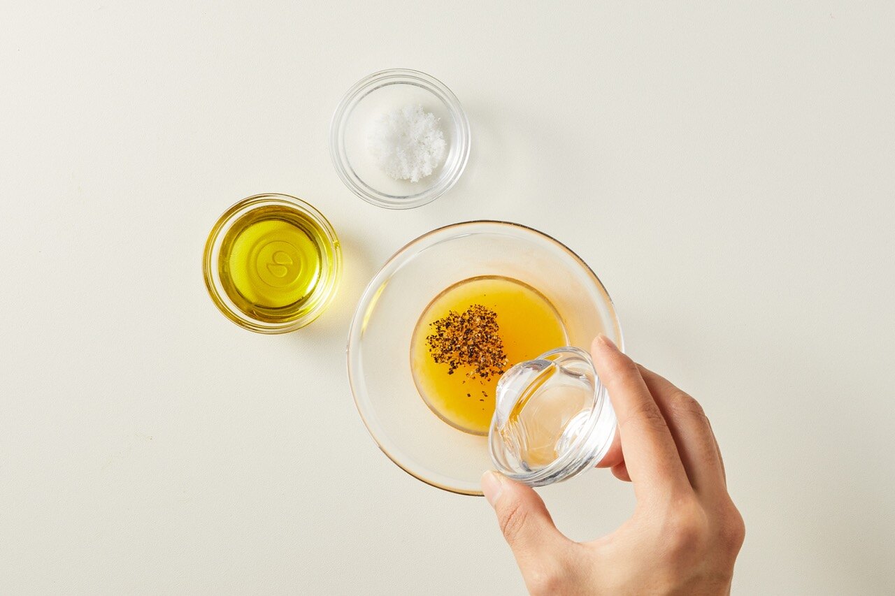 감귤즙 2T, 올리브유 1T, 올리고당 1T, 후추 1t, 소금 1t