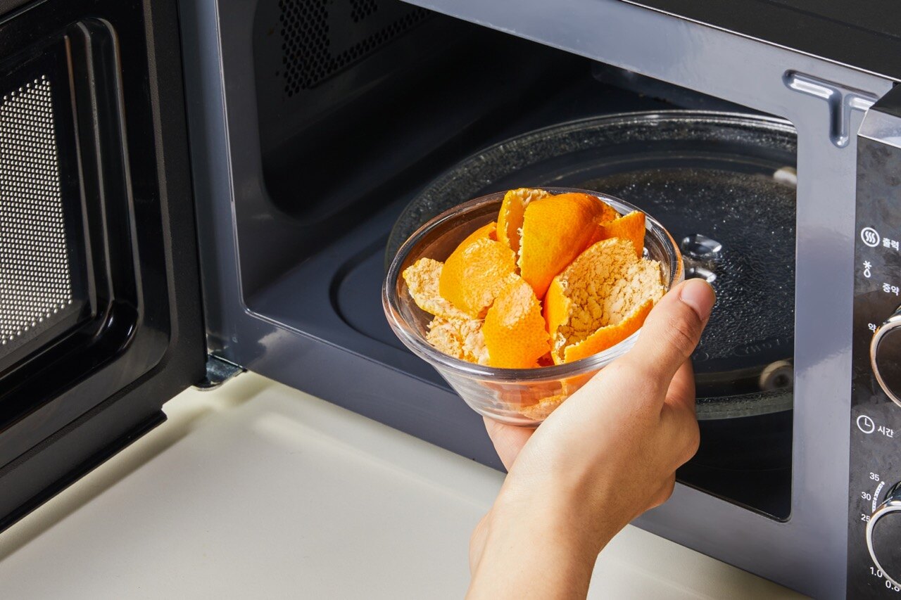 먹고 남은 귤 껍질은 전자레인지에 약 1분 돌린 후,