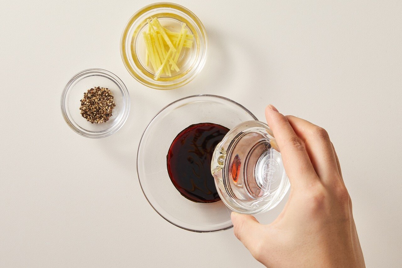 간장과 맛술, 청주, 후추 그리고 채 썬 생강을 골고루 섞어 양념장을 만들어 주세요.