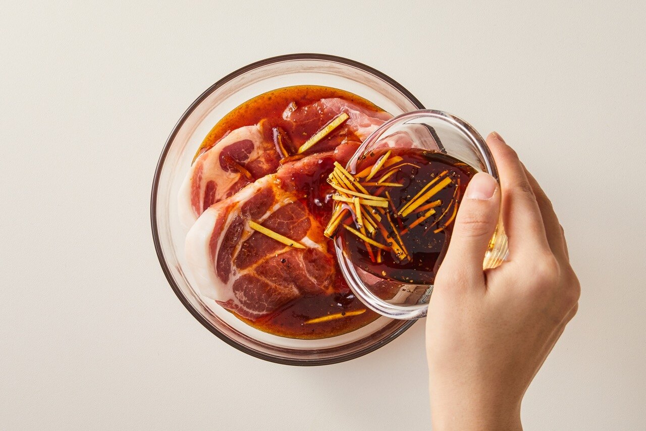 완성된 양념장은 고기에 부어 15~20분 정도 숙성해 주세요.