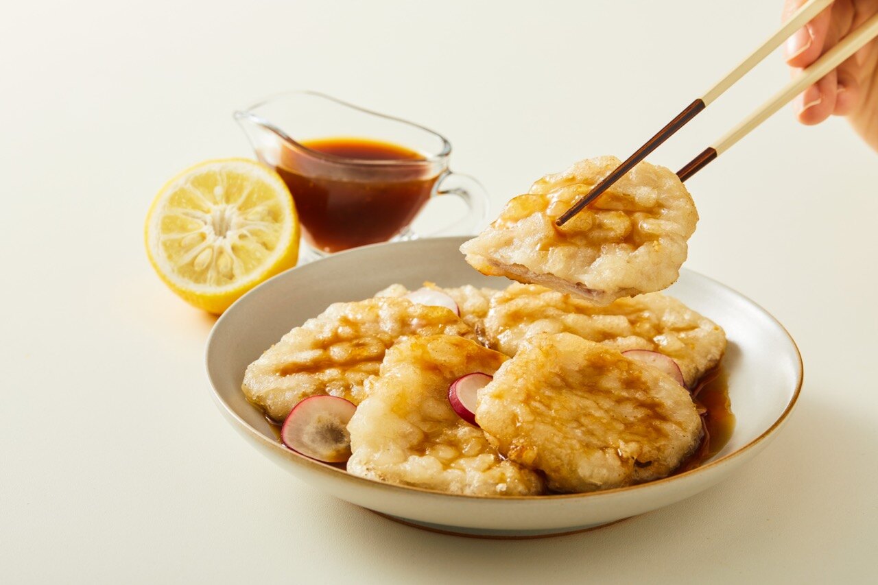 고흥 유자 원액으로 단맛을 낸 소스를 곁들인 꿔바로우입니다.