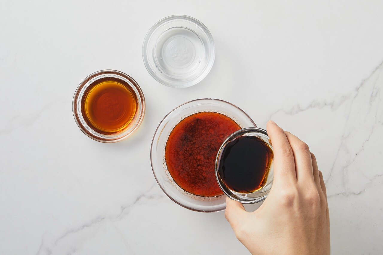 스리라차와 간장, 액젓, 올리고당, 식초를 한데 섞어 소스를 만들어 주세요.