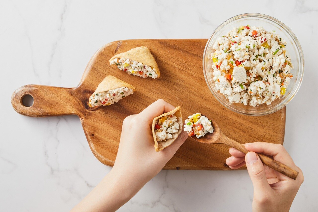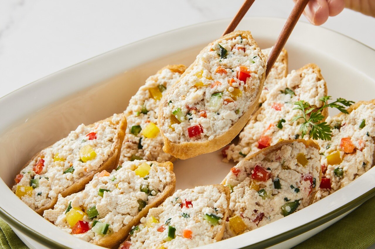 준비한 유부에 만들어둔 소를 하나씩 담아 주세요.