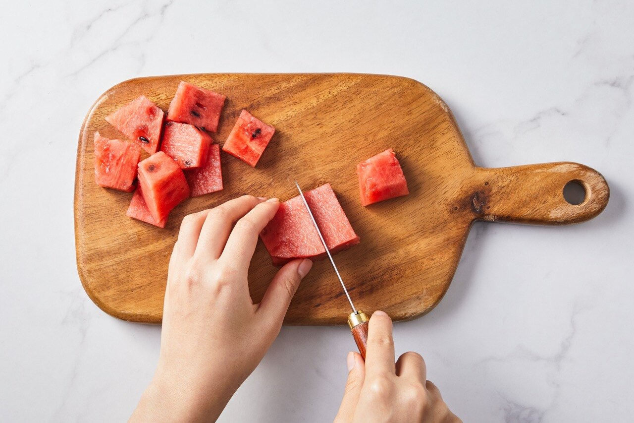 수박을 블렌더에 갈기 좋은 크기로 썰어 주세요.