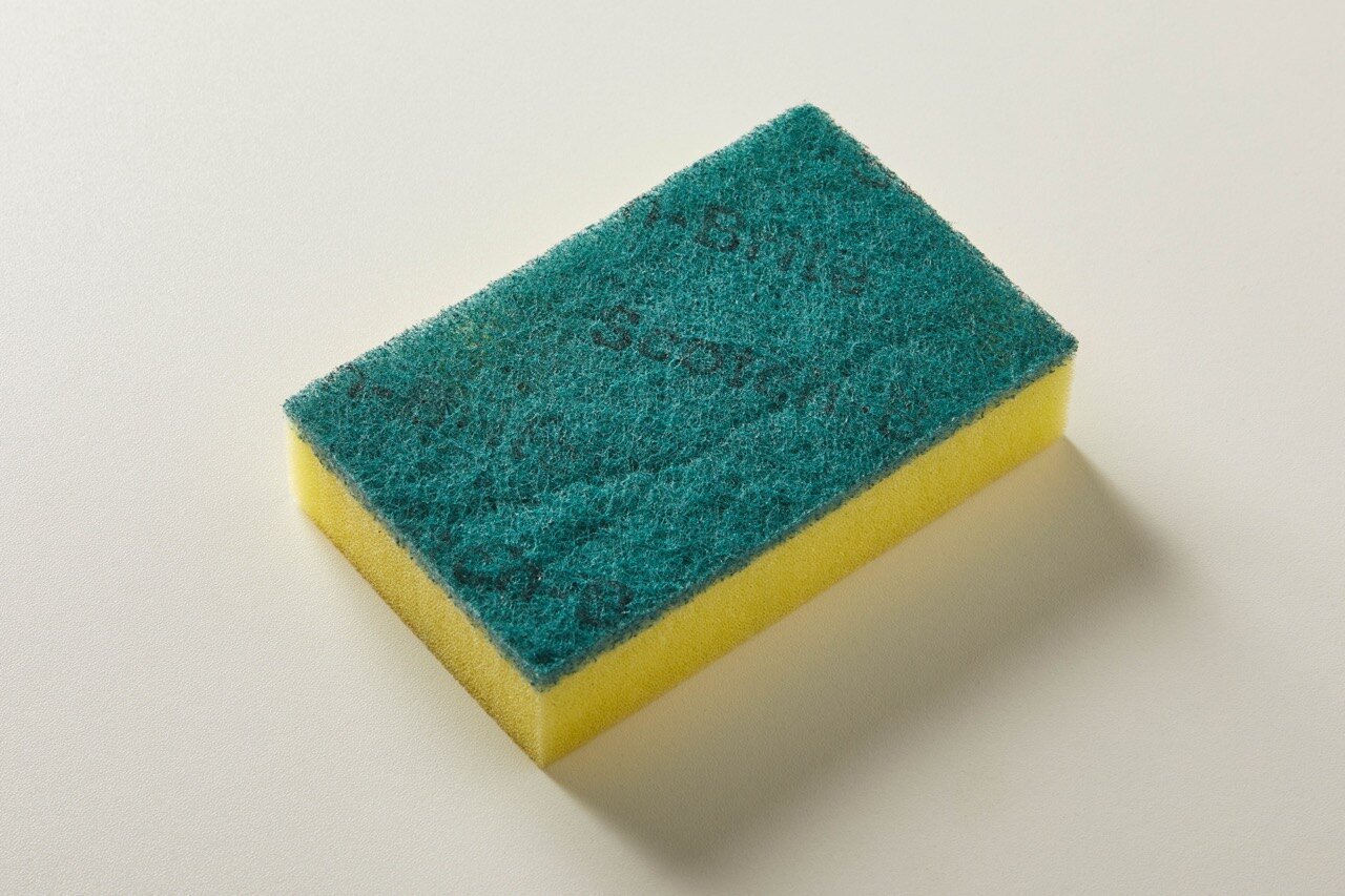 가장 대중적인 수세미죠. 거친 표면의 초록 스크럽 부분은 그릇에 붙은 음식이나, 탄 자국을 세척할 때 좋답니다.