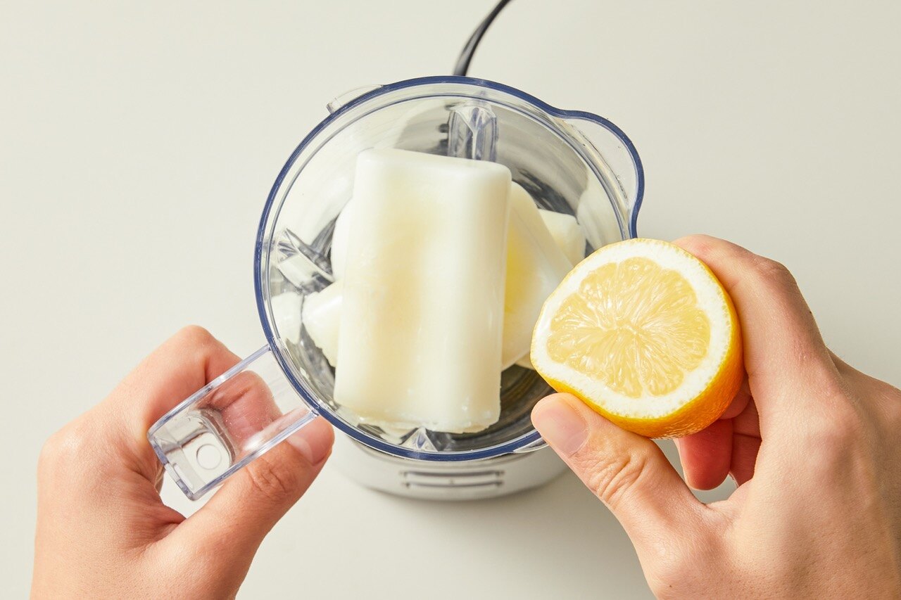 얼린 요거트를 믹서에 넣어주세요.