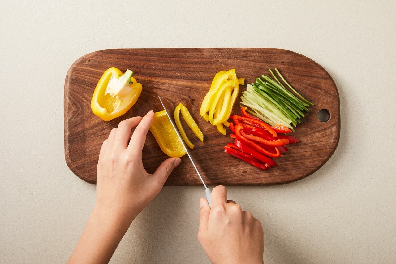 파프리카와 오이는 길게 채썰어 준비해 주세요.