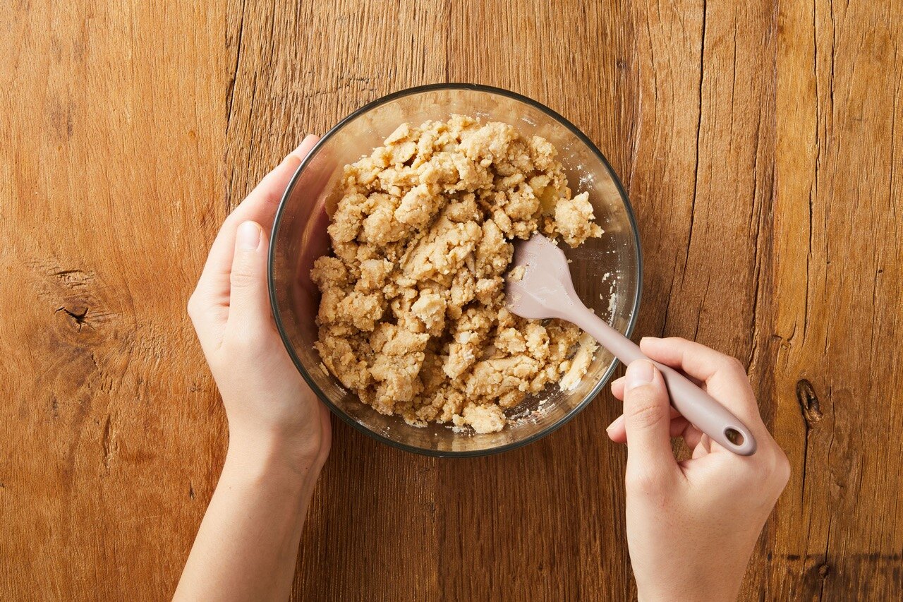 재료들을 고루 섞어가며 크럼블을 만들어 주세요.
