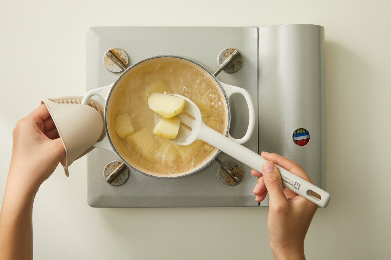 끓는 물에 감자를 10분가량 익혀 주세요.