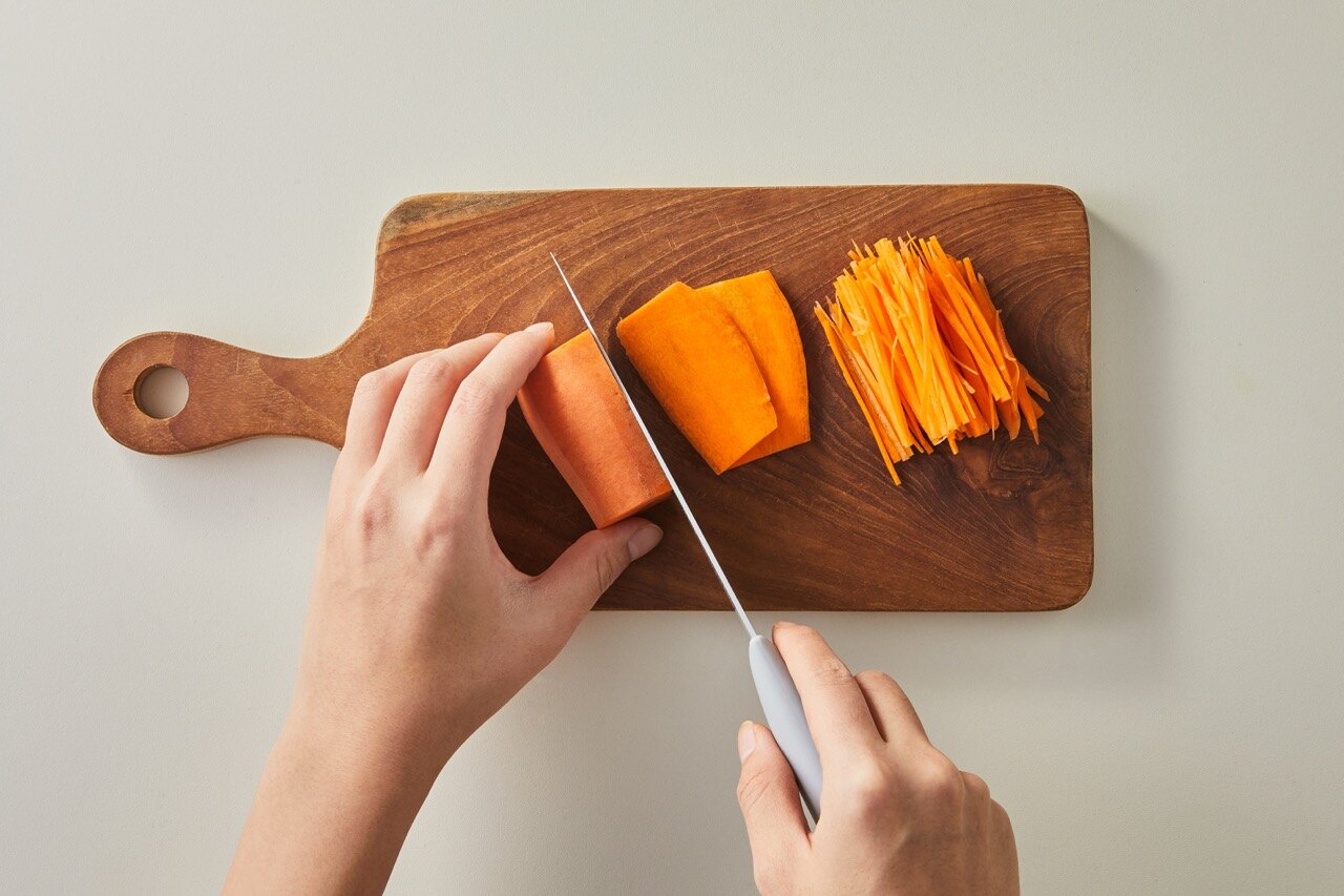 당근은 길게 채 썰어서 준비해 주세요.