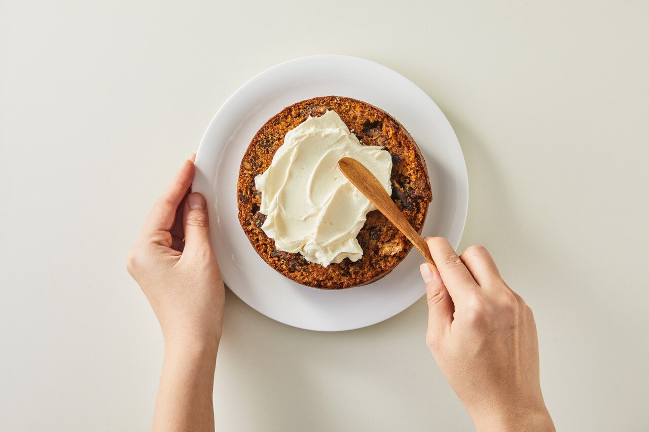 그 위로 크림치즈를 넓게 펴바르며 시트를 쌓으면 완성이에요.