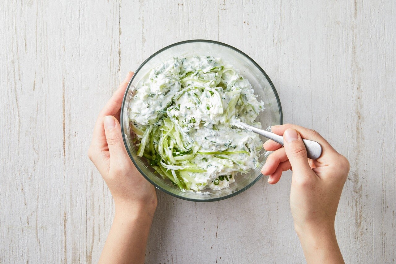 차지키(tzatziki) 소스는 요구르트에 오이, 마늘,