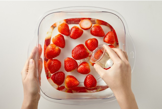 물 1L에 베이킹소다 1큰술을 넣고 약 5분간 담가 주세요.
