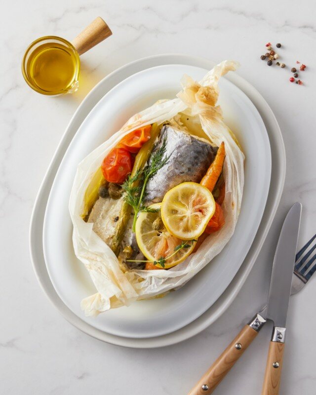 생선과 채소를 종이 호일에 싸서 구워 내는 요리예요.
