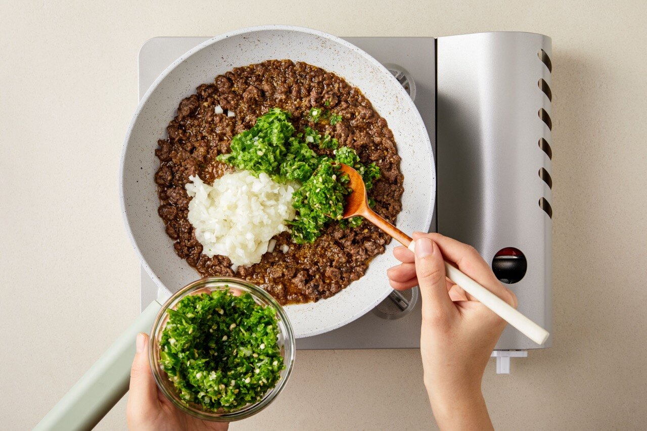 다진 양파와 다진 청양고추를 추가해 주세요.