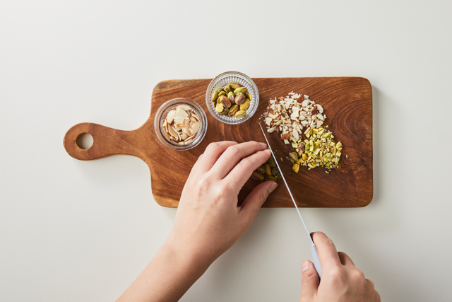 아몬드 슬라이스와 피스타치오를 잘게 다져 주세요.