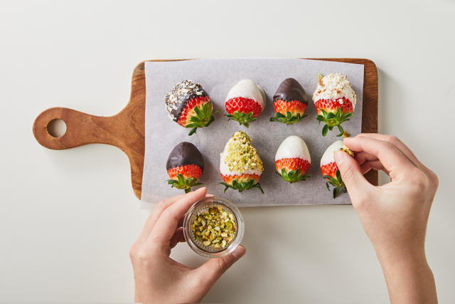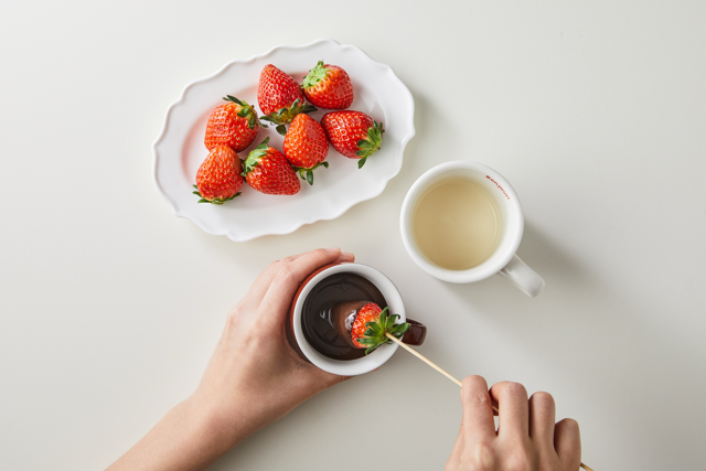 새콤한 딸기와 달콤한 초콜릿의 조화는 언제나 옳죠. 다크, 화이트 중 가장 좋아하는 초콜릿에 딸기를 퐁당 빠트려보세요. 보기만 해도 기분이 물씬 좋아지는 사랑스러운 디저트가 완성된답니다.