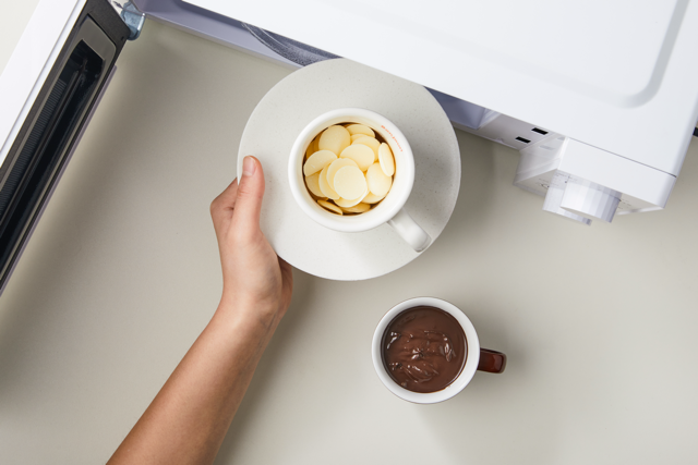 화이트&다크 초콜릿을 전자레인지에 넣고 30~40초 정도 돌려 녹여 주세요.