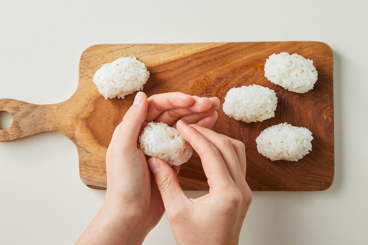 양념한 밥을 한입 크기로 동그랗게 뭉쳐 주세요.