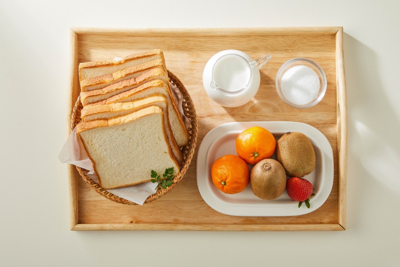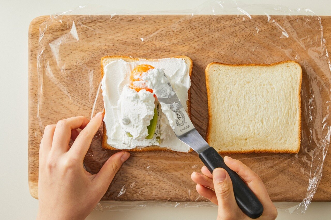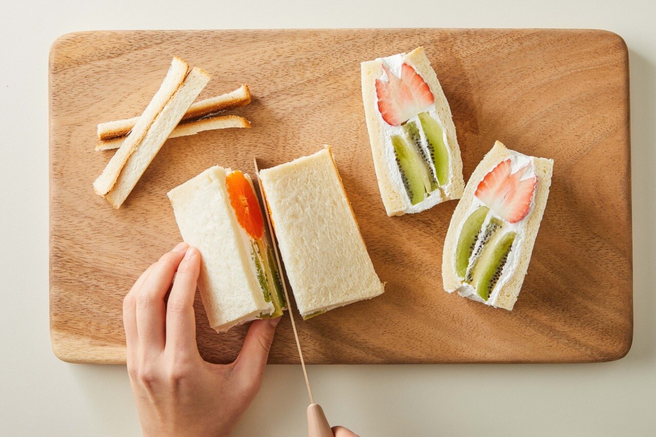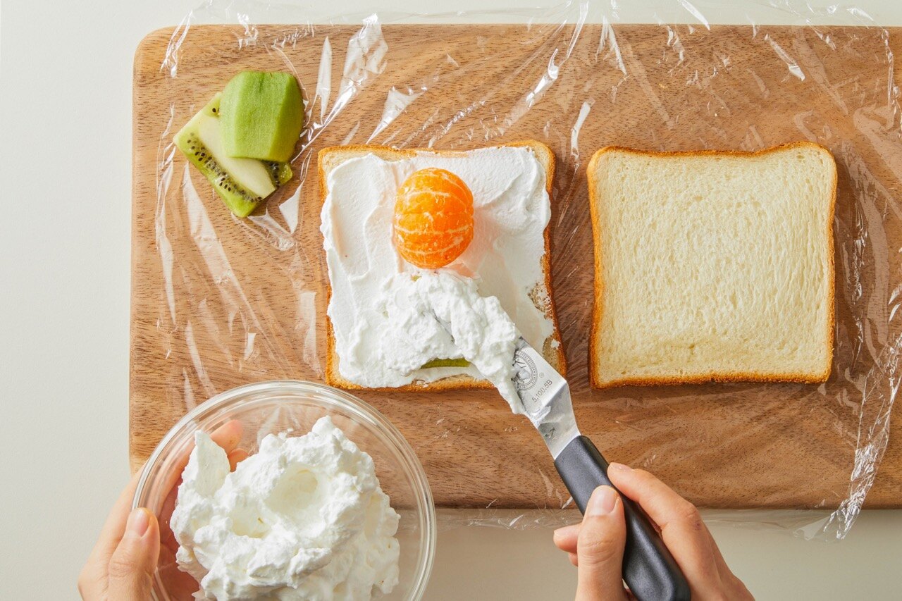 신선한 과일을 부드러운 식빵 시트 사이에 담아