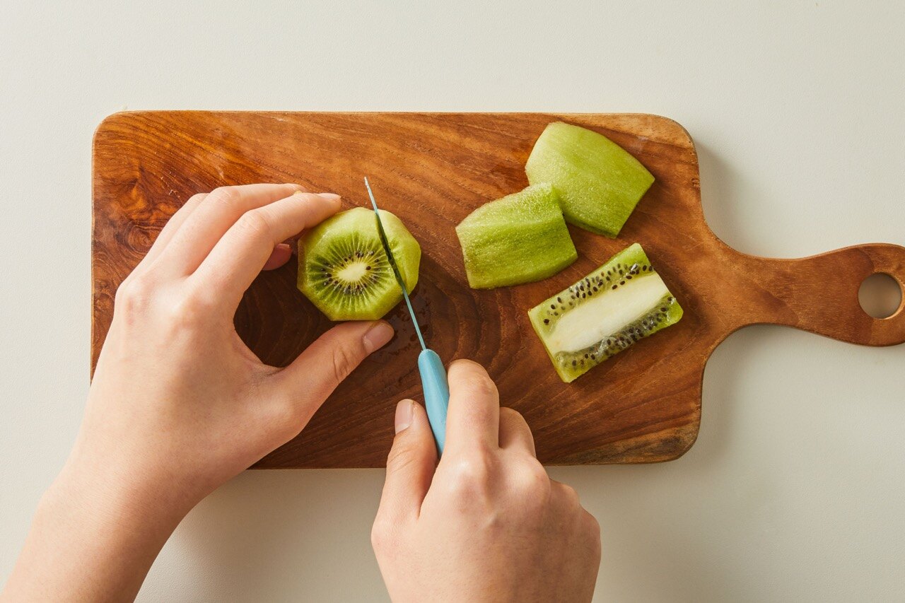 키위는 양 끝을 잘라낸 후 약 1cm 두께로 썰어주세요.