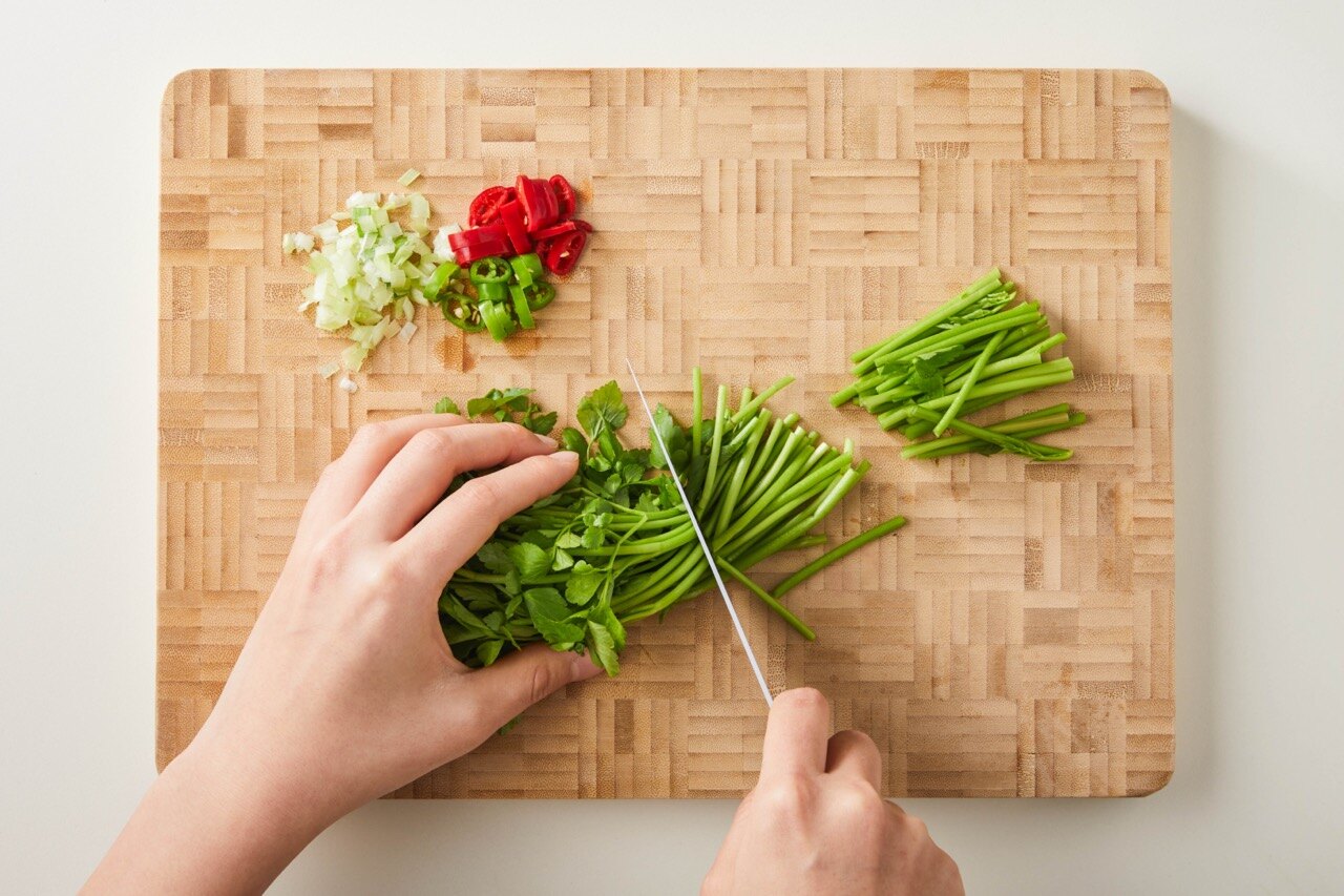 깨끗이 세척한 미나리는 약 5cm 길이로 자른 뒤,