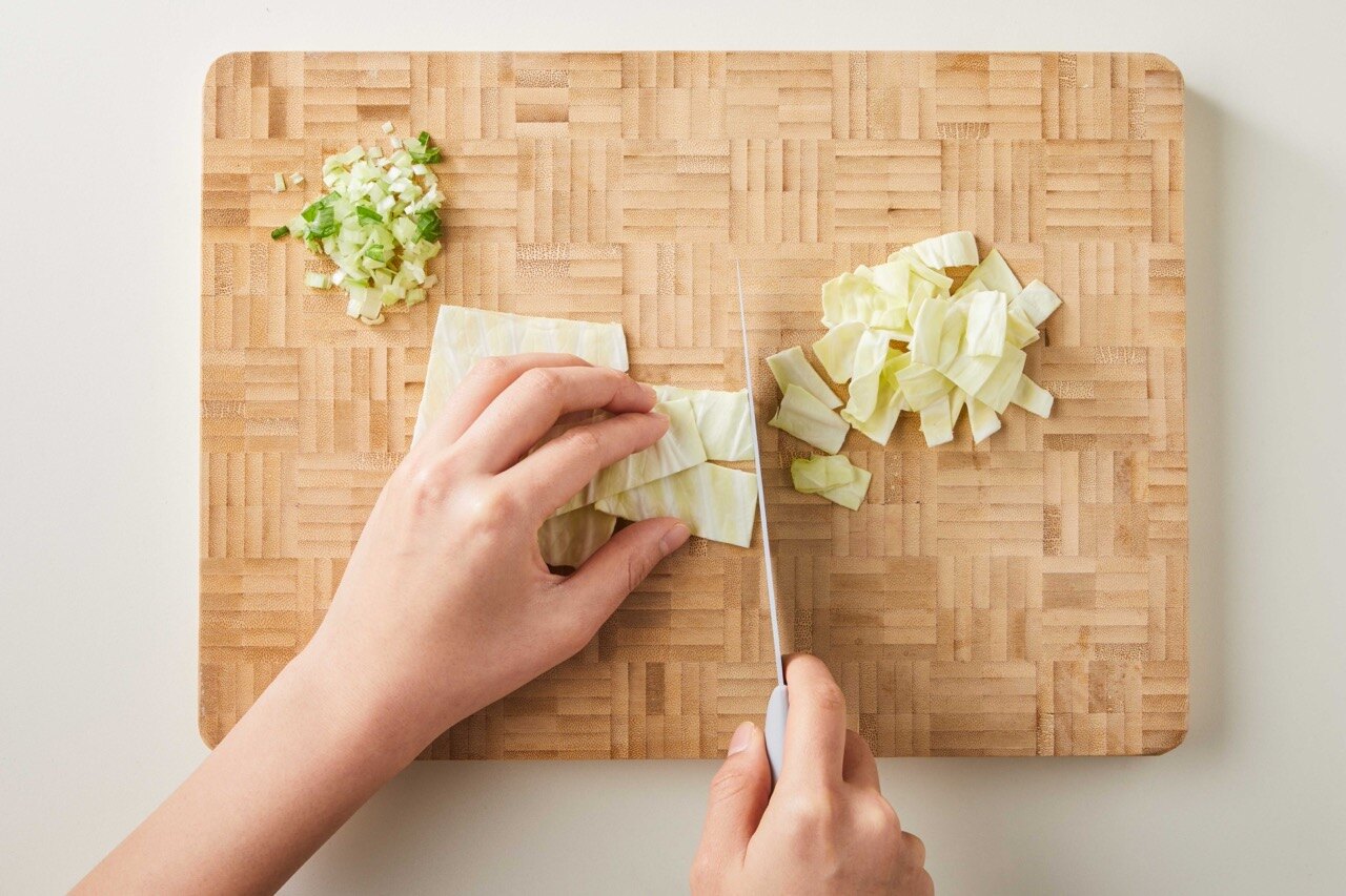 양배추는 먹기 좋은 크기로 깍둑 썰고, 대파는 다져 준비해 주세요.
