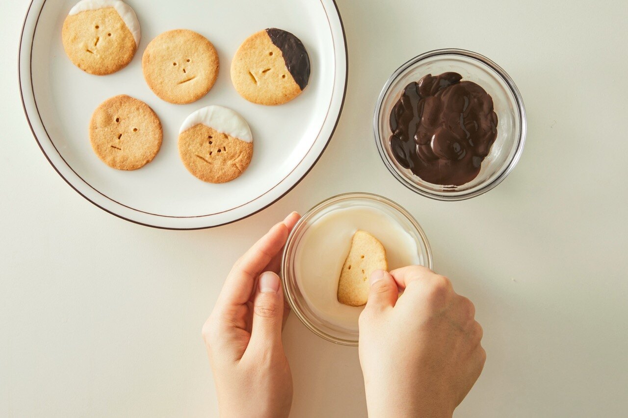 녹인 초콜릿으로 쿠키를 꾸며 주세요.